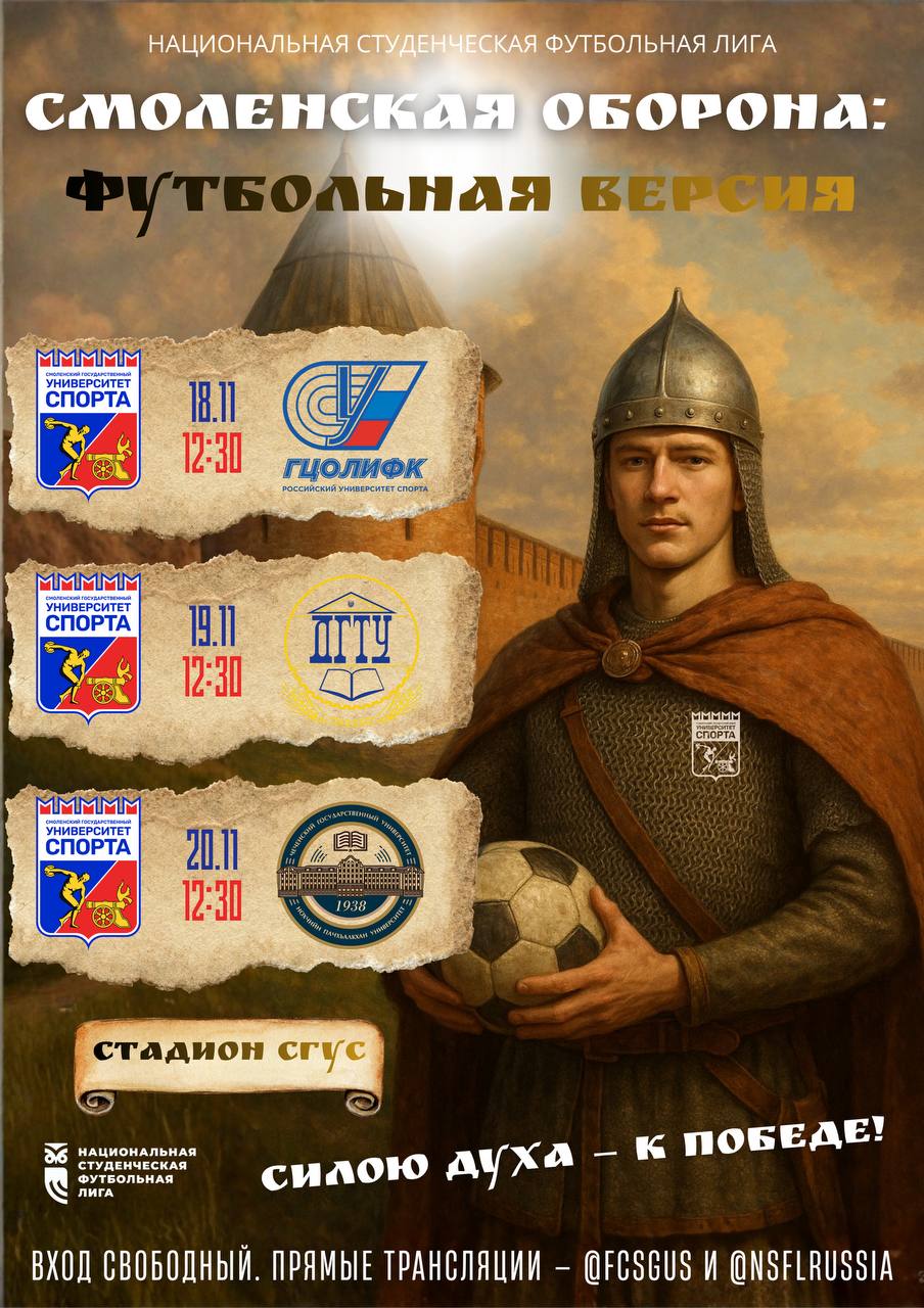 Расписание матчей: 18 ноября — СГУС (Смоленск) X ГЦОЛИФК (г. Москва) 19 ноября — СГУС (Смоленск) X ДГТУ (г. Ростов-на-Дону) 20 ноября — СГУС (Смоленск) X ЧГУ (г. Грозный)