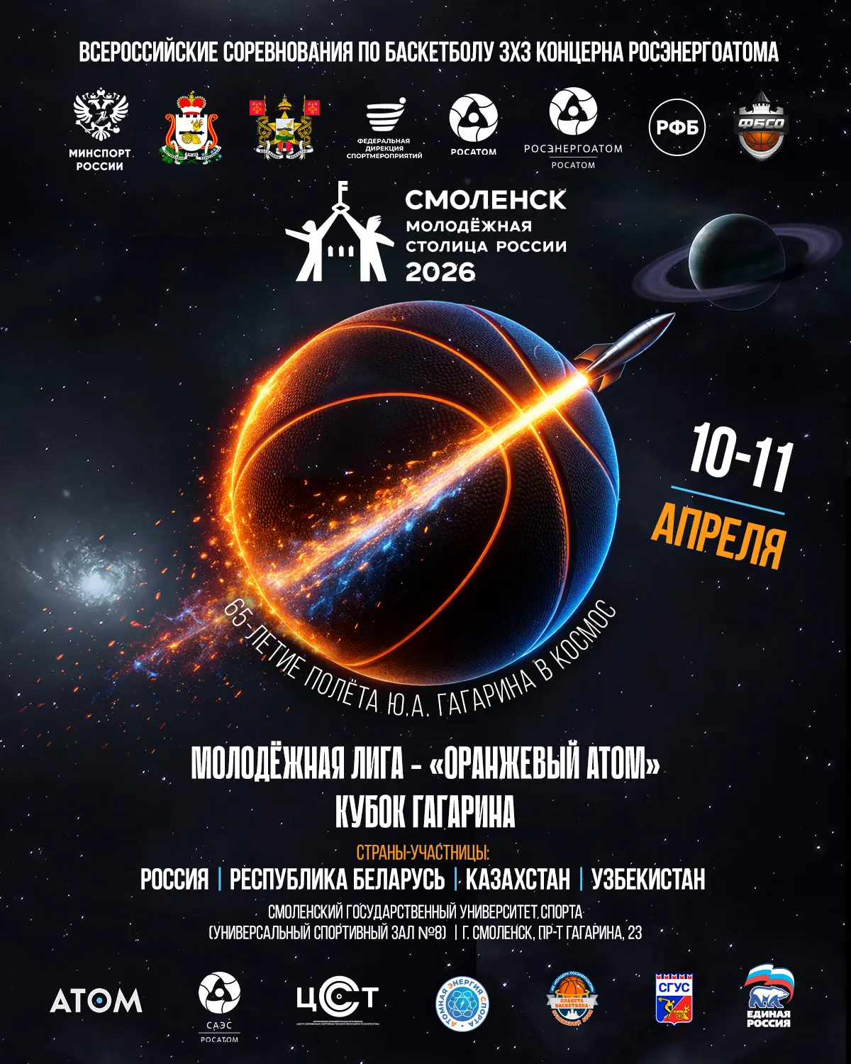 10 – 11 апреля в Смоленске пройдет второй тур Молодежной Лиги «Оранжевый атом» - Кубок Гагарина. Участниками Молодежной лиги станут юноши и девушки до 19 лет, а также юноши и девушки до 24 лет.
