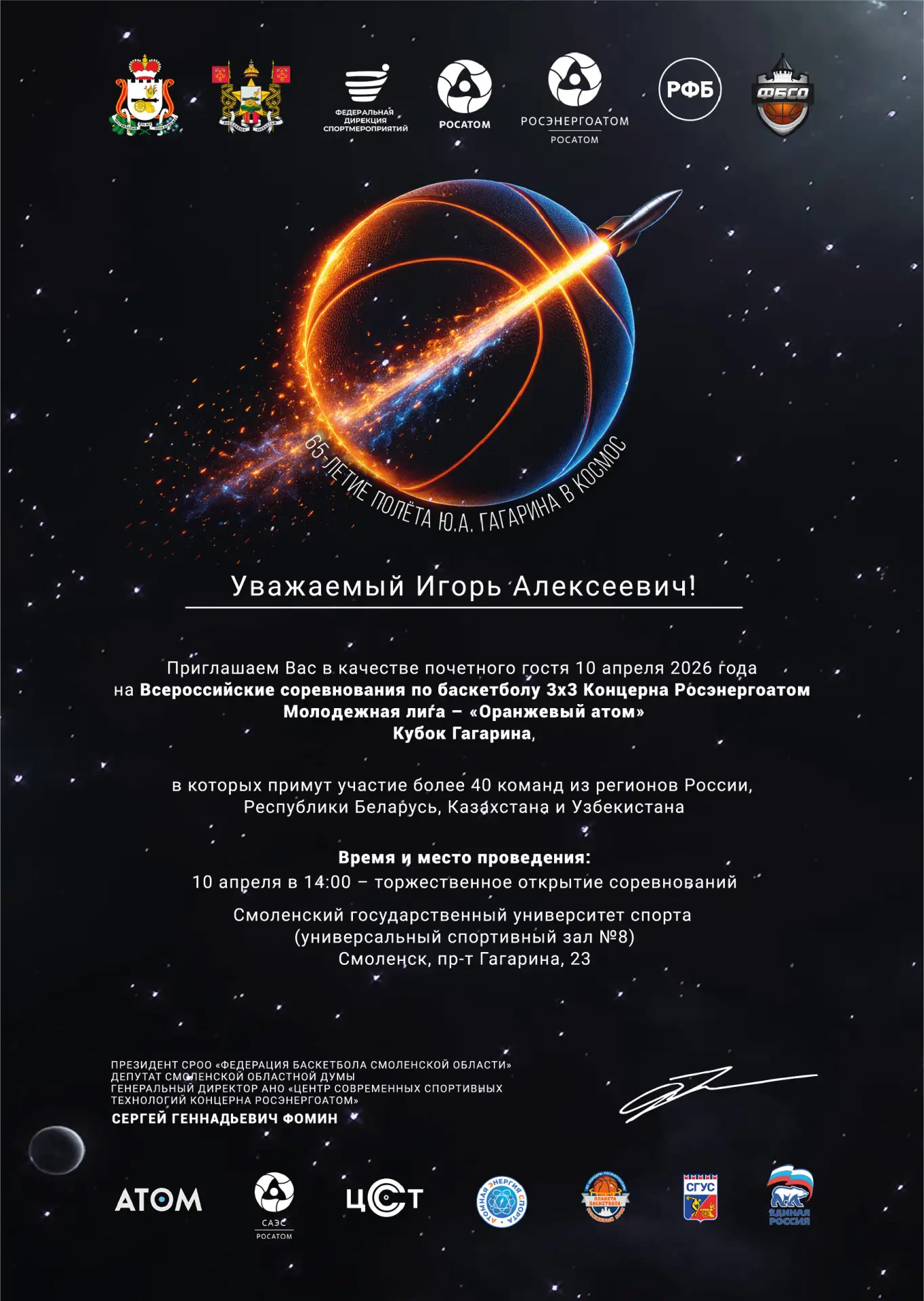 Соревнования проводятся при поддержке Министерства спорта Российской Федерации, Российской Федерации Баскетбола, Концерна Росэнергоатом, Правительства Смоленской области, Администрации города-героя Смоленска и Смоленской атомной электростанции.