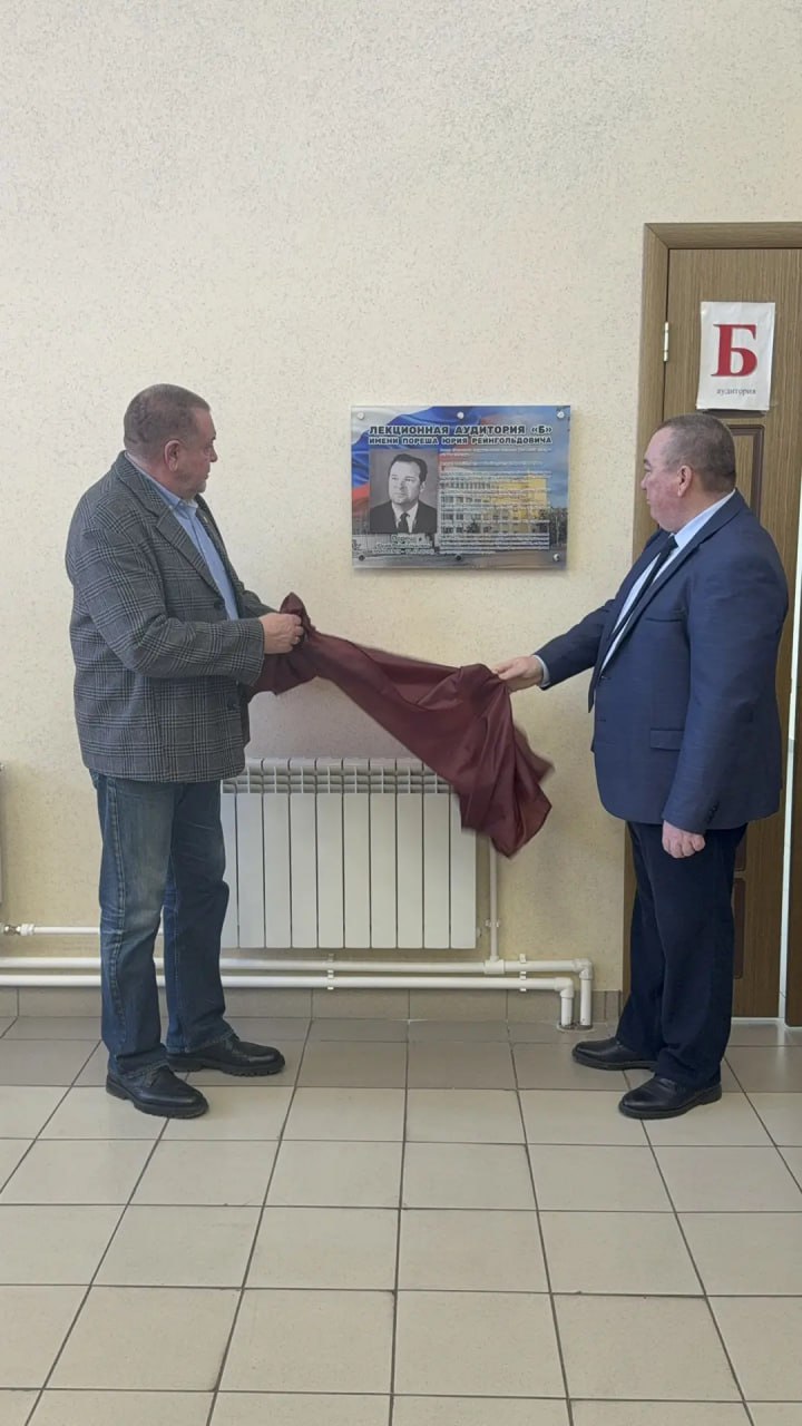 Завершилось заседание открытием памятной доски выдающемуся деятелю университета ветерану Великой Отечественной войны, ветерану труда Порешу Юрию Рейнгольдовичу. Почетное имя ветерана присвоено одной из лекционных аудитории университета.