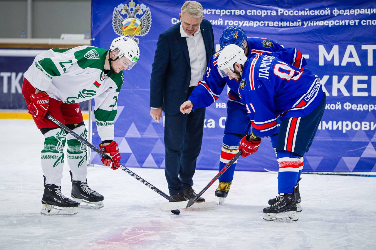 Соперниками выступили хоккейные сборные Смоленского государственного университета спорта и Белорусского государственного университета физической культуры.