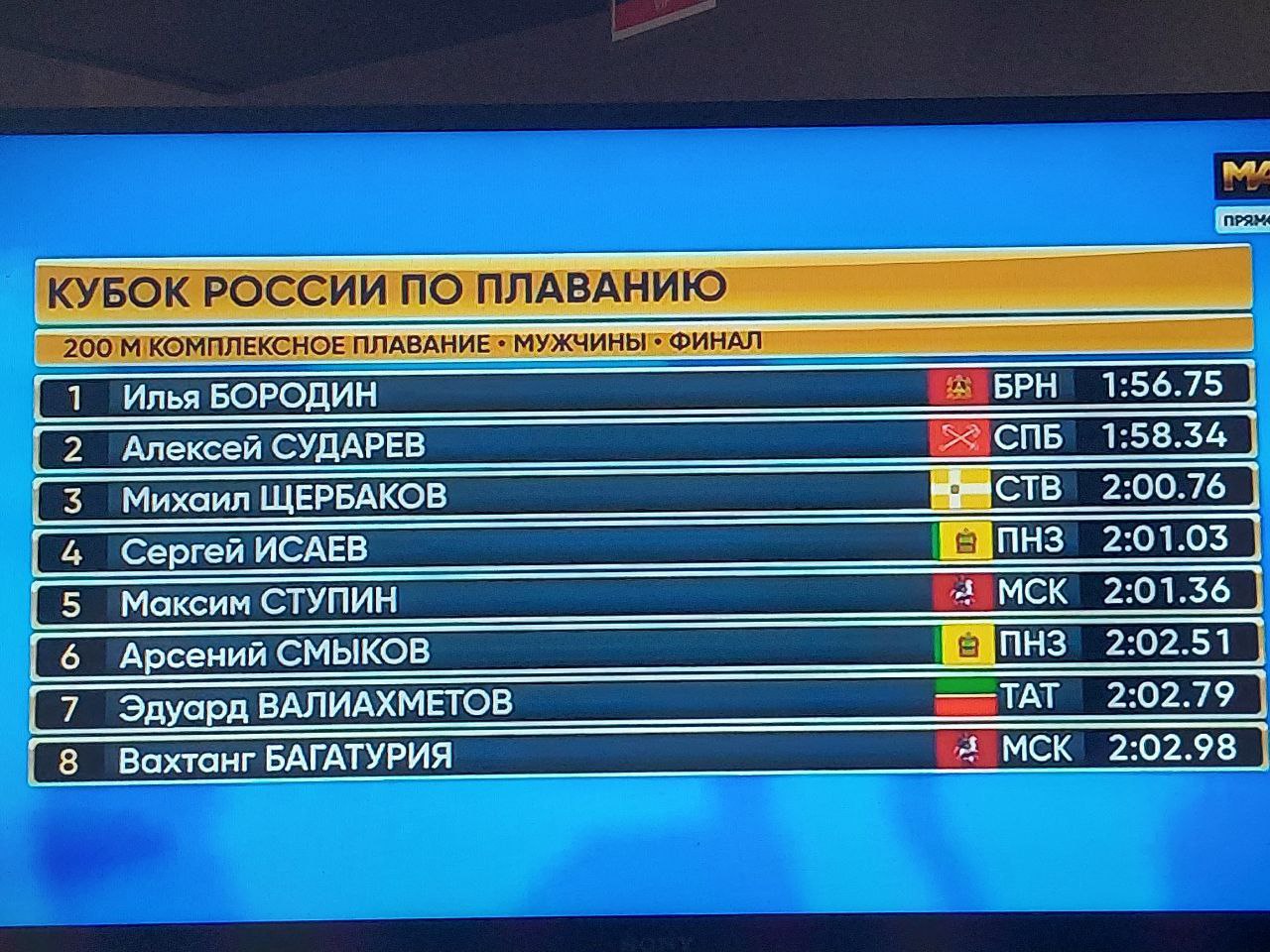 студент кафедры водных видов спорта занял 1 место на дистанции 200 метров комплексное плавание, а также установил рекорд России - 1.56.75 RR