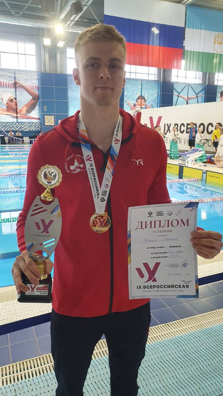 Троценко Максим студент первого курса кафедры водных видов спорта занял 1место на дистанции 50метров брассом и 1место на дистанции 100метров брассом.