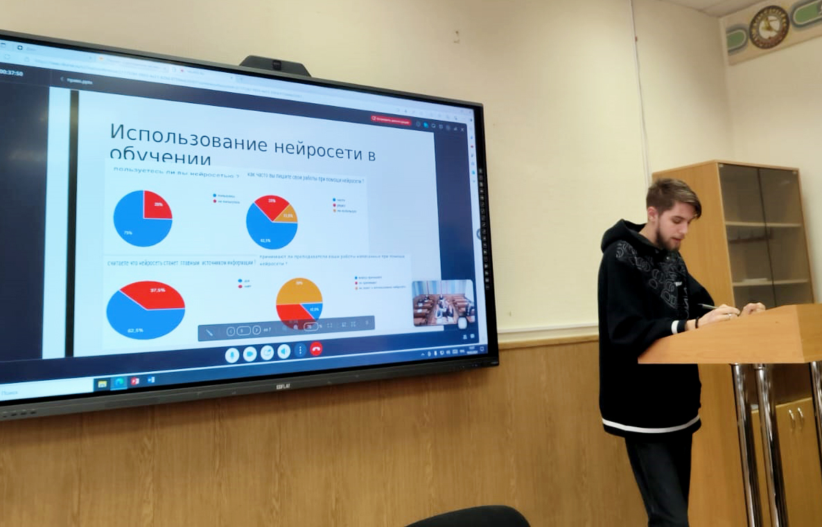В рамках работы круглого стола были представлены результаты научно-исследовательской работы студента третьего курса Мельника Максима Сергеевича на тему «Особенности использования искусственного интеллекта в образовании студентов в России и за рубежом» (Давыдова Оксана Валерьевна, ст. преподаватель), в котором обучающиеся выразили свою позицию в отношении применения современных технологий в обучении.